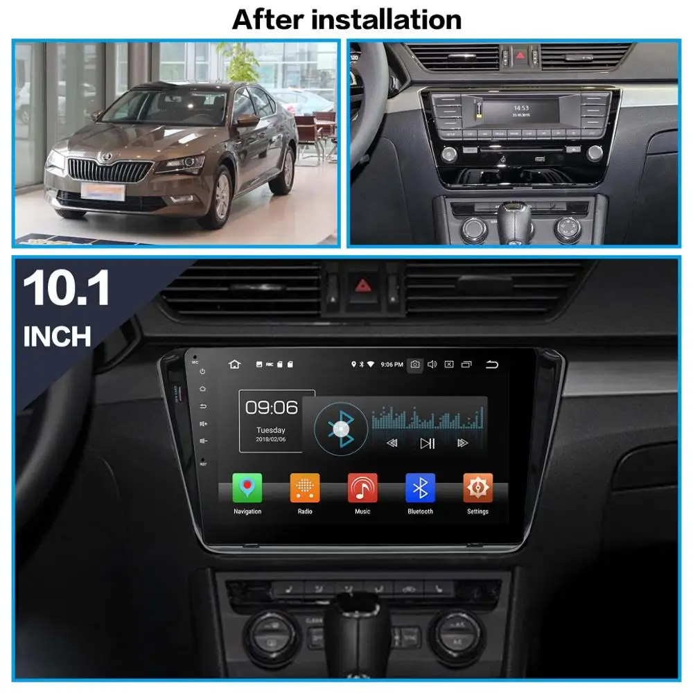 Android 9.0 8-Core Car DVD Player for SkodaSuperb 2015-2018 MAX4GB RAM 64GB ROM Stereo Auto Radio Audio Head Unit Support 4G CPU: Rockchip PX5 Octa-Core ,64-Bit CoretexA53 OS: Latest android 9.0 8-CORE RAM: DDR3 2GB; ROM: 16GB RAM: DDR3 4GB; ROM: 32GB RAM: DDR3 4GB; ROM: 64GB SuperioramplifierChip:TDA7850(4*50W Max) Radio Chip:NXP 6686,Low IF Tuner , High Performance Screen :IPS Screen, Resolution1024*600 Bluetooth :Hands-Free Profile / Audio Profile(A2DP);Free 1.5m Microphone Variable Key Illumination, all RGB colors Fast Boot time(2nd time): about 3s;Cold Boot time: about 20-25s If your car dashboard is the same as below,you can buy this GPSNavigation from our store directly.