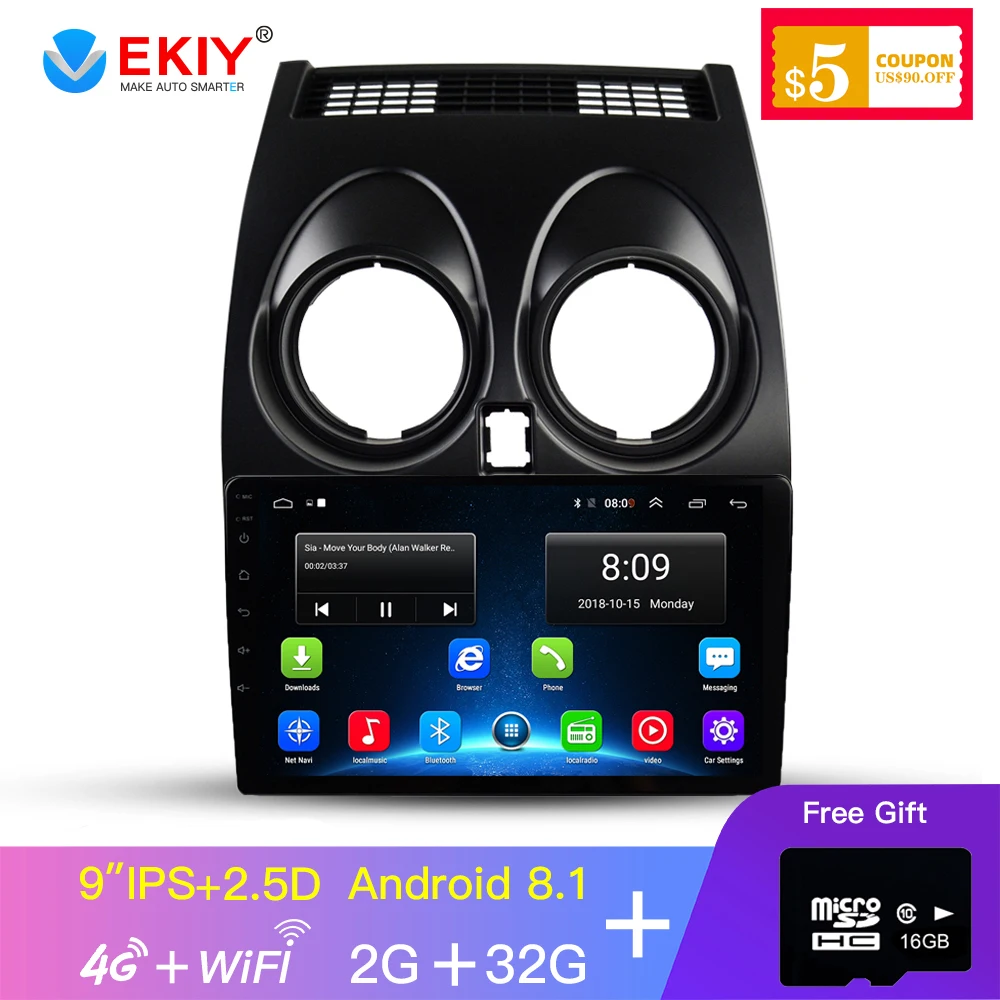 EKIY 9' IPS Car Multimedia Video Player Media GPS Navigation Android No 2 Din Auto Radio For Nissan Qashqai 1 2006-2013 J10Feature:System:AndroidOperation SystemRAM:1/2GROM:16/32GTouch Screen:9 inch IPS ScreenResolution:1024*600Function:DIY wallpaper from Gallery PicturesOSD Language:it has more than 70 kinds of languages to selectBuilt-in WiFi Modem, Include 4G Modem,Support 4G/Mobile Phone WIFI hotspots.DIY Main Menu Display: You can drag Search Bar, Weather Forecast widgets, Music/Radio/BT-Stereo Player,Apps or other Bookmarks on main menu to displayBuilt-in Mirror link. It can connect with Iphone via Wifi hotspots and connect with Android mobile phone via USB data cable and Wifi Hotspot. The mobile phone image will display on DVD, also music, video, game. For Android mobile, the DVD touch screen can control the mobile.(Please note: It can support a part of Android mobile not all of them)Support Google Maps online Navigating, Support various Android navigation software including Sygic/IGO 8, and etcSupport Android Multimedia Player, it can play Music/Movie/Photo from local Disc or connected TF Card.Online Entertainment, support online video, TV, movie, music, radio, Youtube, Yahoo, MSN...Online Communication, keep connected through WeChat, Twitter, Facebook, Gtalk, Gmail and other servicesSupport read and edit Official Software, WORD/EXCEL/POWERPOINT/PDF/TXT.Support Google Play Store, you can download thousands of Apps from here and you can down many popular games like Fruit Ninja, Feed the Candy, Angry Birds, Fieldrunner, speed forge 3D.Support Games app, HD Video, 1080P, H.264, DIVX Live images FormatsSupport Bluetooth hands-free function, built-in microphoneDownload phone book function, you can download contact information from your phone to this unitSupport the newest Phone Book Search, you can search&find a contact member in downloaded phone book,just input the first letter of name, you will find some associated names, then you can choose the right one.Support Car DVR System, just connect with a USB Camera to use Car Record function. the records will be saved in GPS card automatically, and you can play saved record on this unit directly.Support DVB-T T2/MPEG2/MPEG4/ISDB-T Box input (TV box isn't included)Support Steering Wheel Control, With this function, you can intently focus on the driving and choose your favorite music safely on the move. (This function can only work with the car which supports analog signal)Support OBD Turque Function. you can connect OBD Dongle(Not included). Combined with vehicle detection software that can read car each sensor date, real-time detection auto state, providing real-time valid reference data for traffic safety.Support Europe Digital Audio Broadcasting(DAB), you have to buy a USB receiver and antenna from us. Only work in Europe areaPacking List:Car Radio*1Frame Adapter*1Power Cable*1Reverse Cable*1RCA Cable*1GPS Antenna*14G Modem*14G Antenna*1USB Cable*2